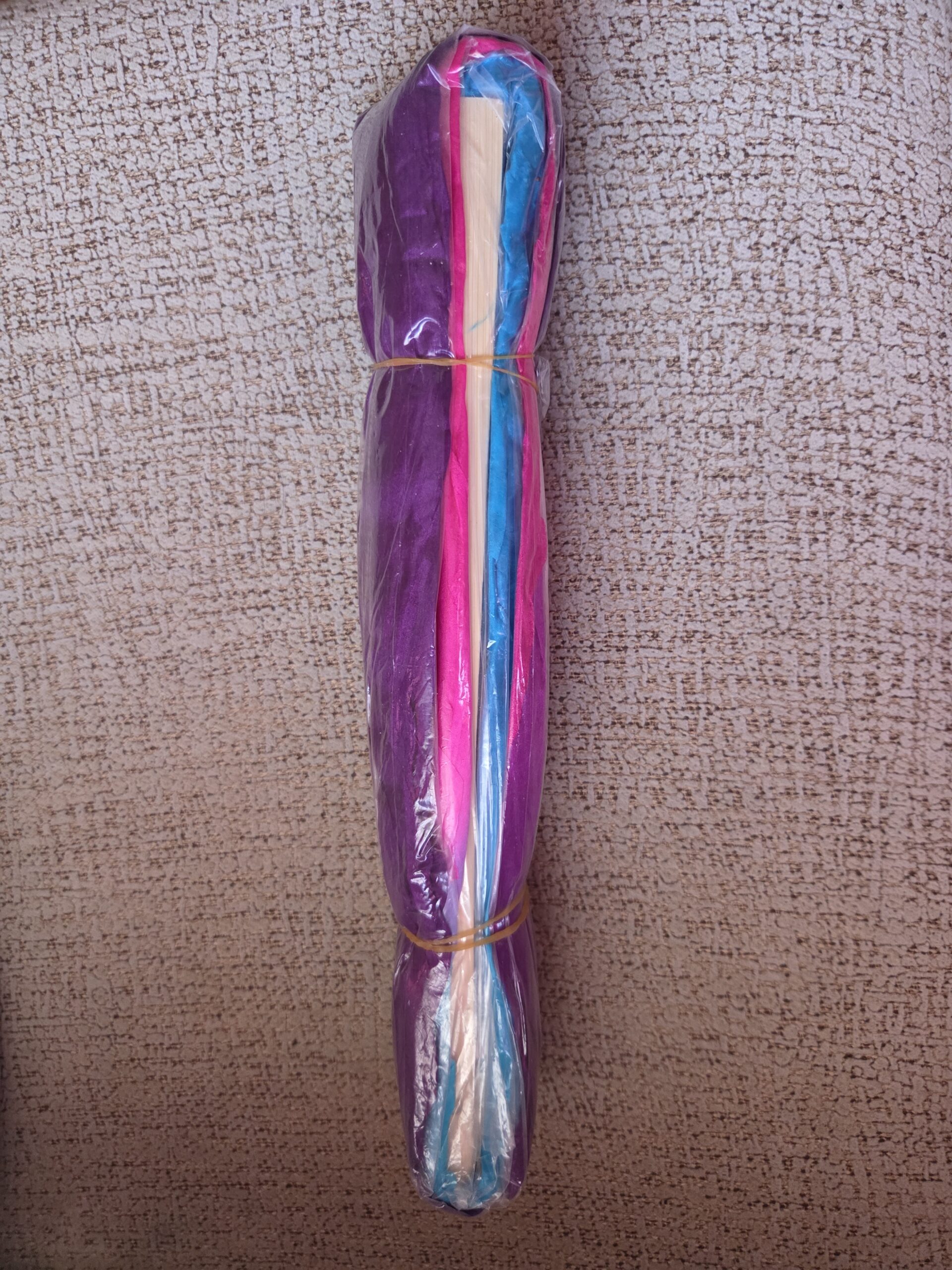 Abanico de seda color morado, fucsia y celeste turquesa.